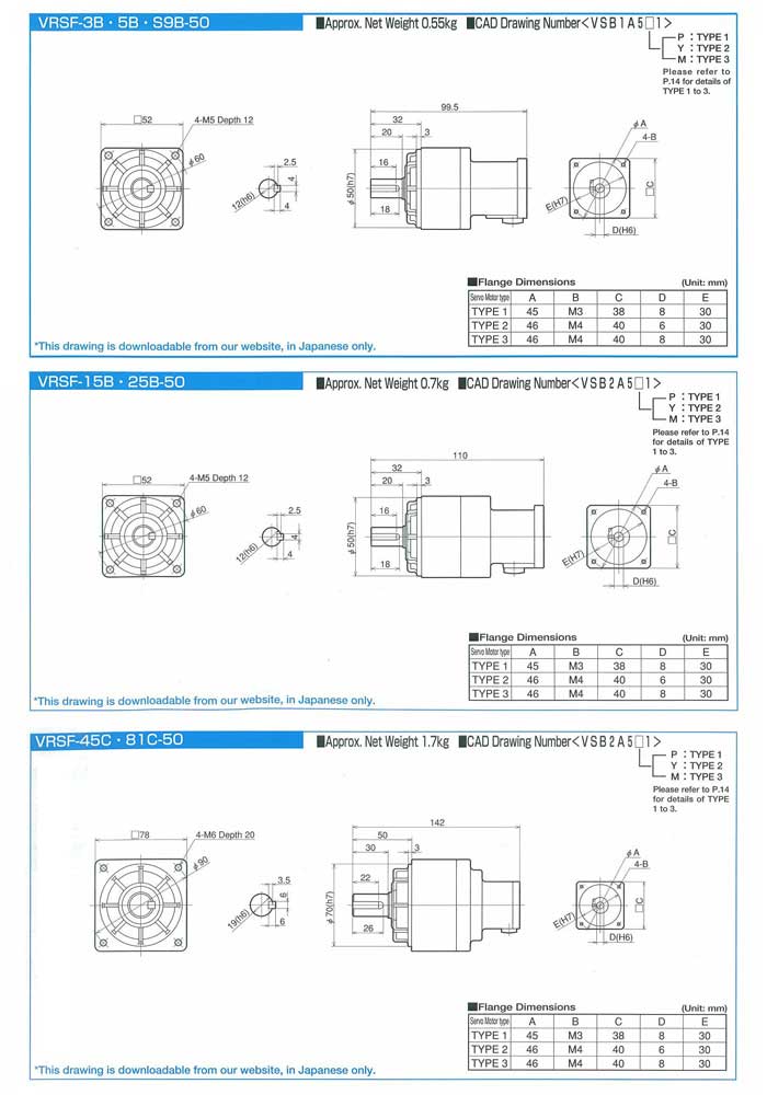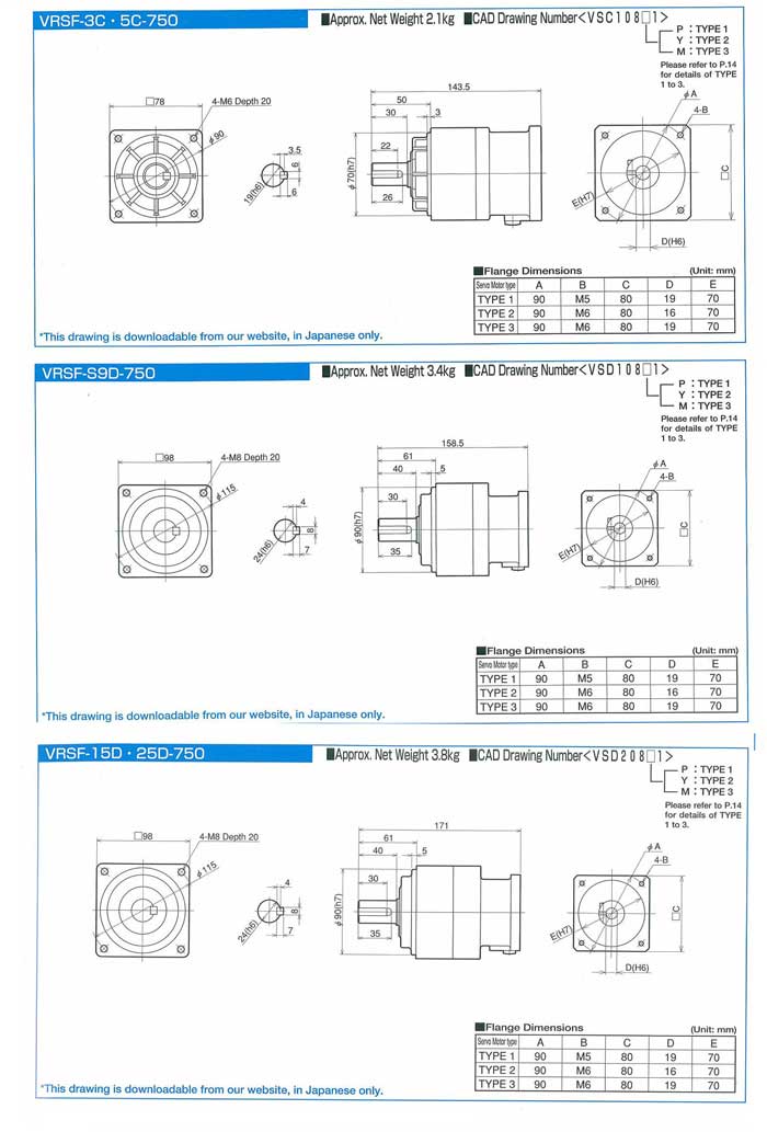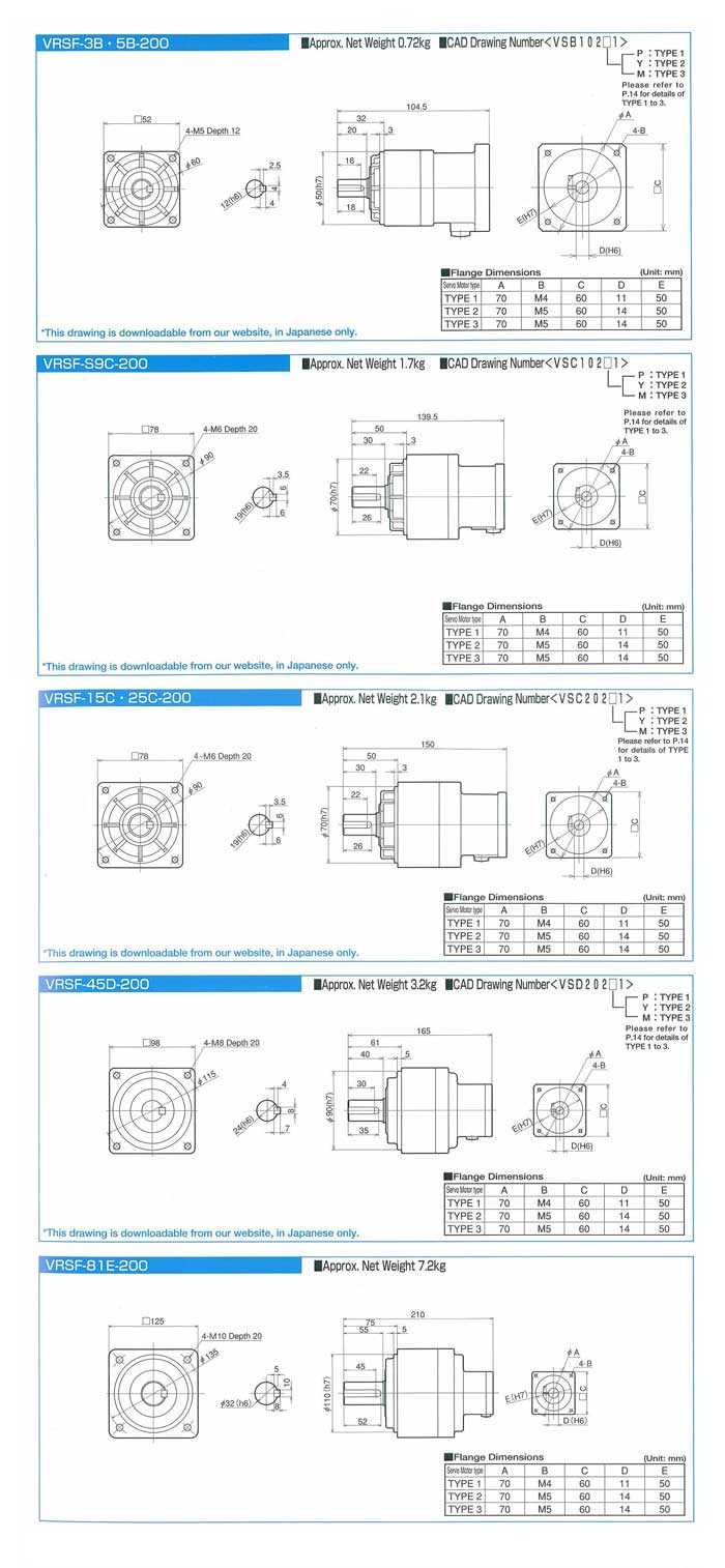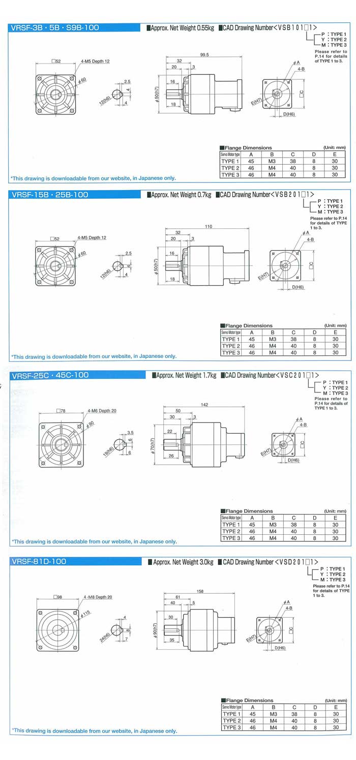 Precision Backlash Type/Low Backlash Type/Standard Type